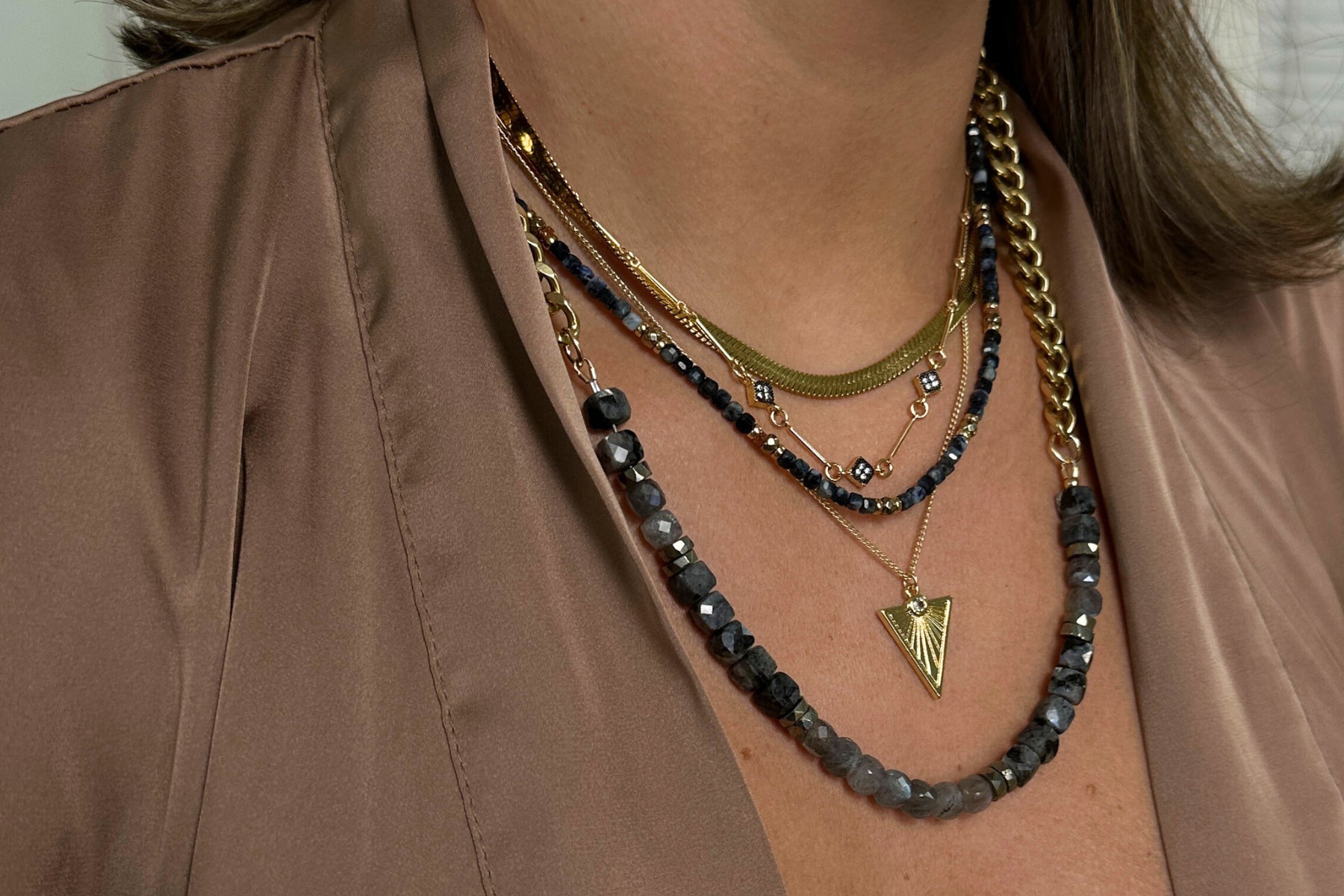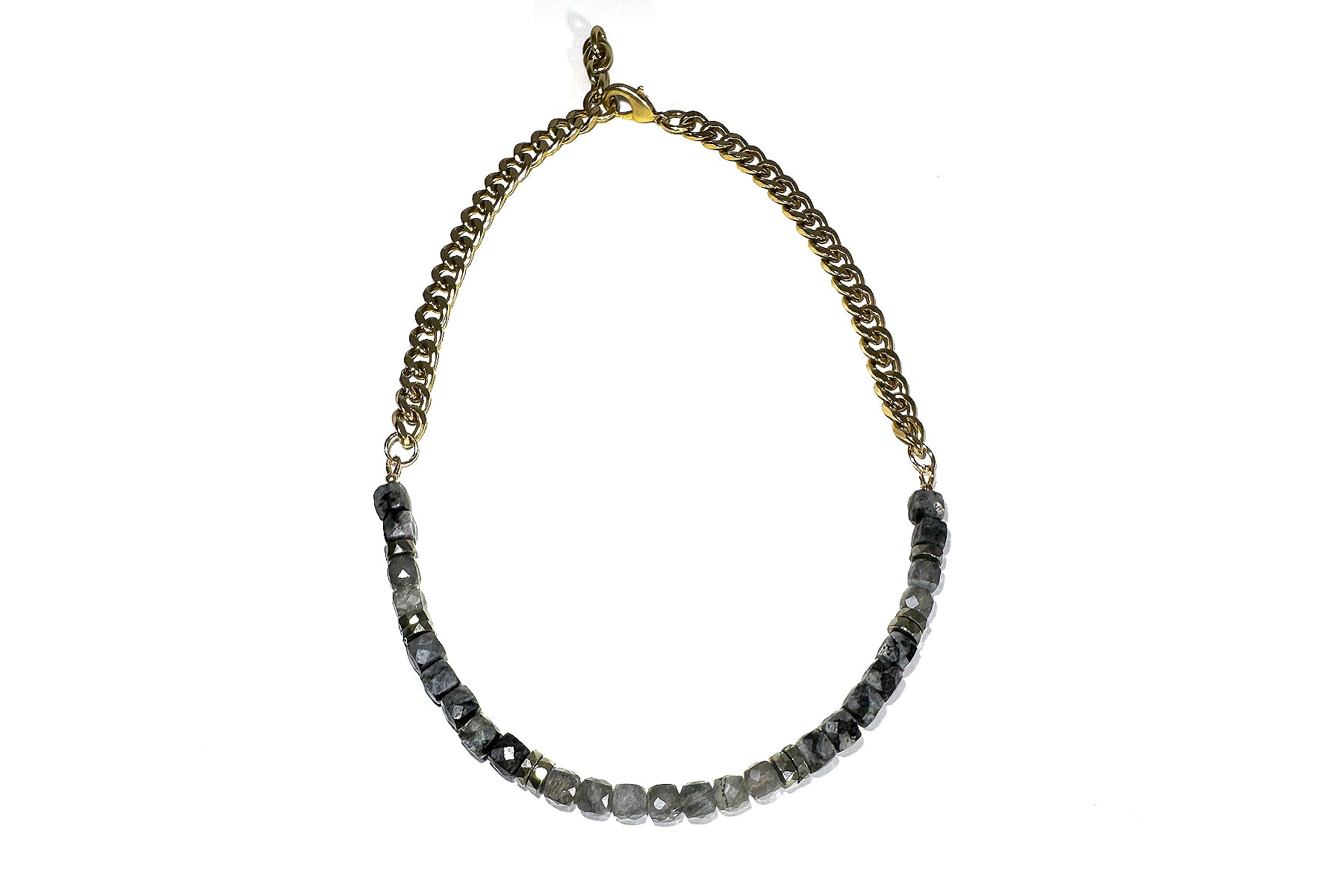 NEW! LABRADORITE & LARVIKITE CUBES | CURB. A new go-to of our Founder’s (Rachel Nathan) - as grey is her favorite color - this gorgeous composition of gemstones sparkles all day (and night) long, with near-ombre style iridescent hues of Labradorite paired with the rich grey tones of Larvikite.