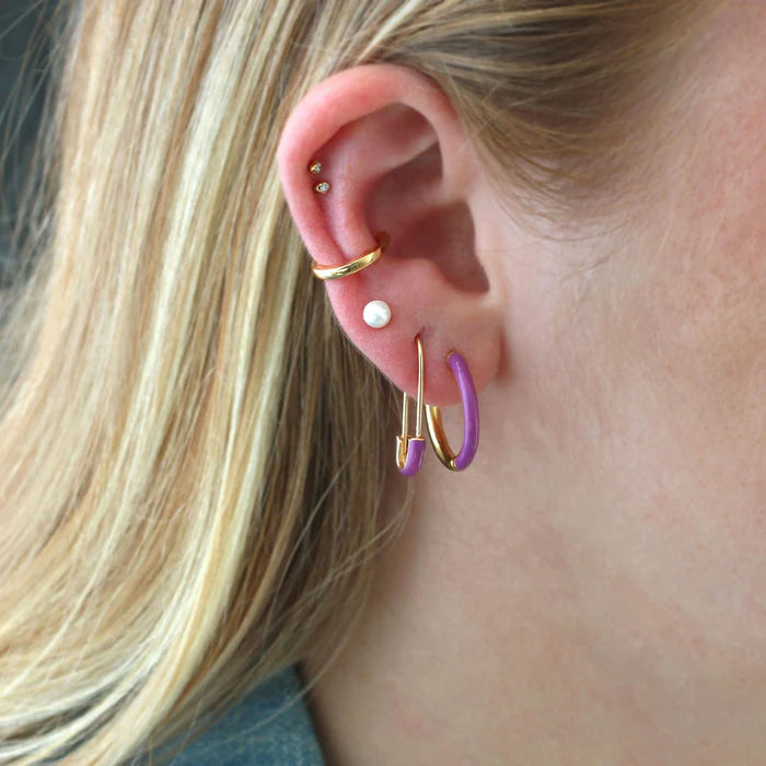 Freshwater pearls measure 3mm with a classic post and butterfly backing. Packaged in our signature glass bottle. We assemble, package and ship all of our jewelry from our studio in Half Moon Bay, California.