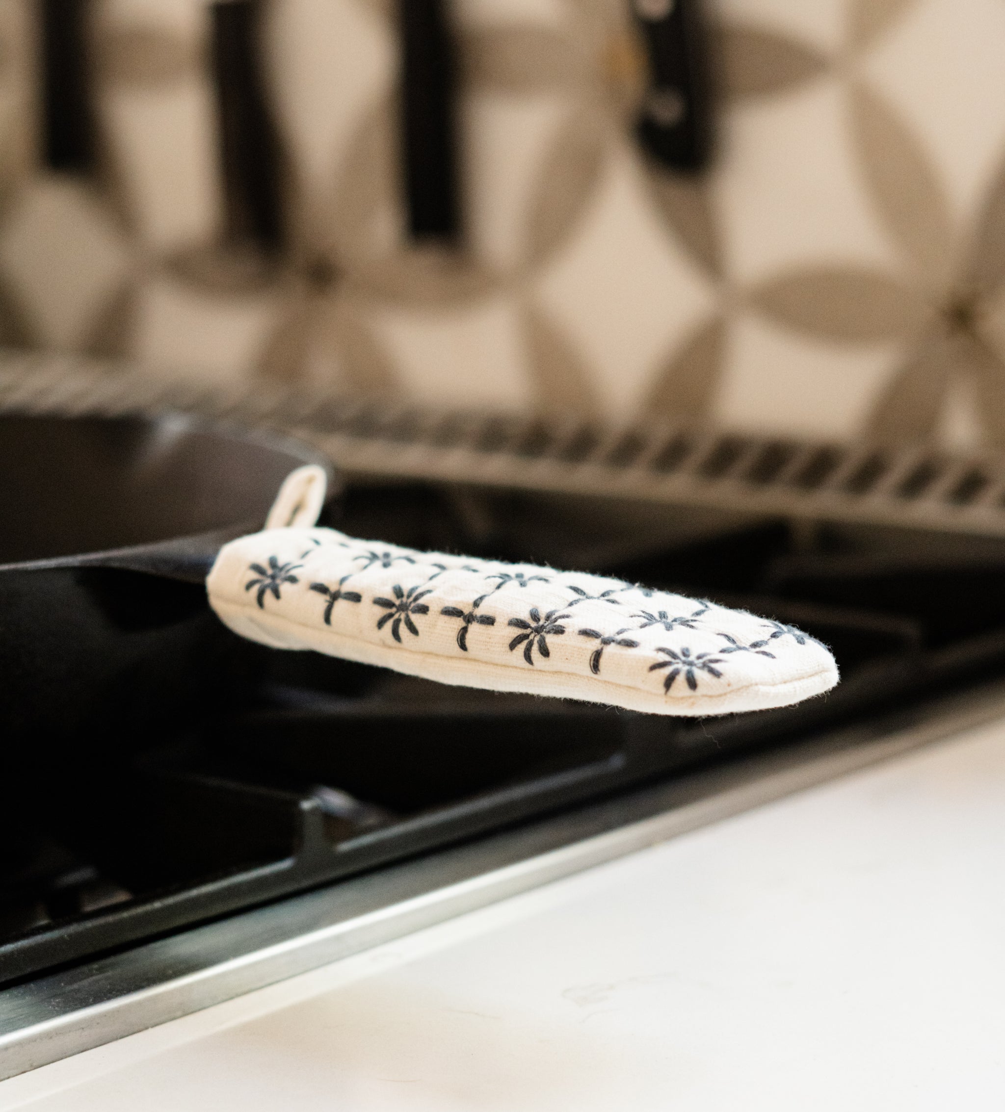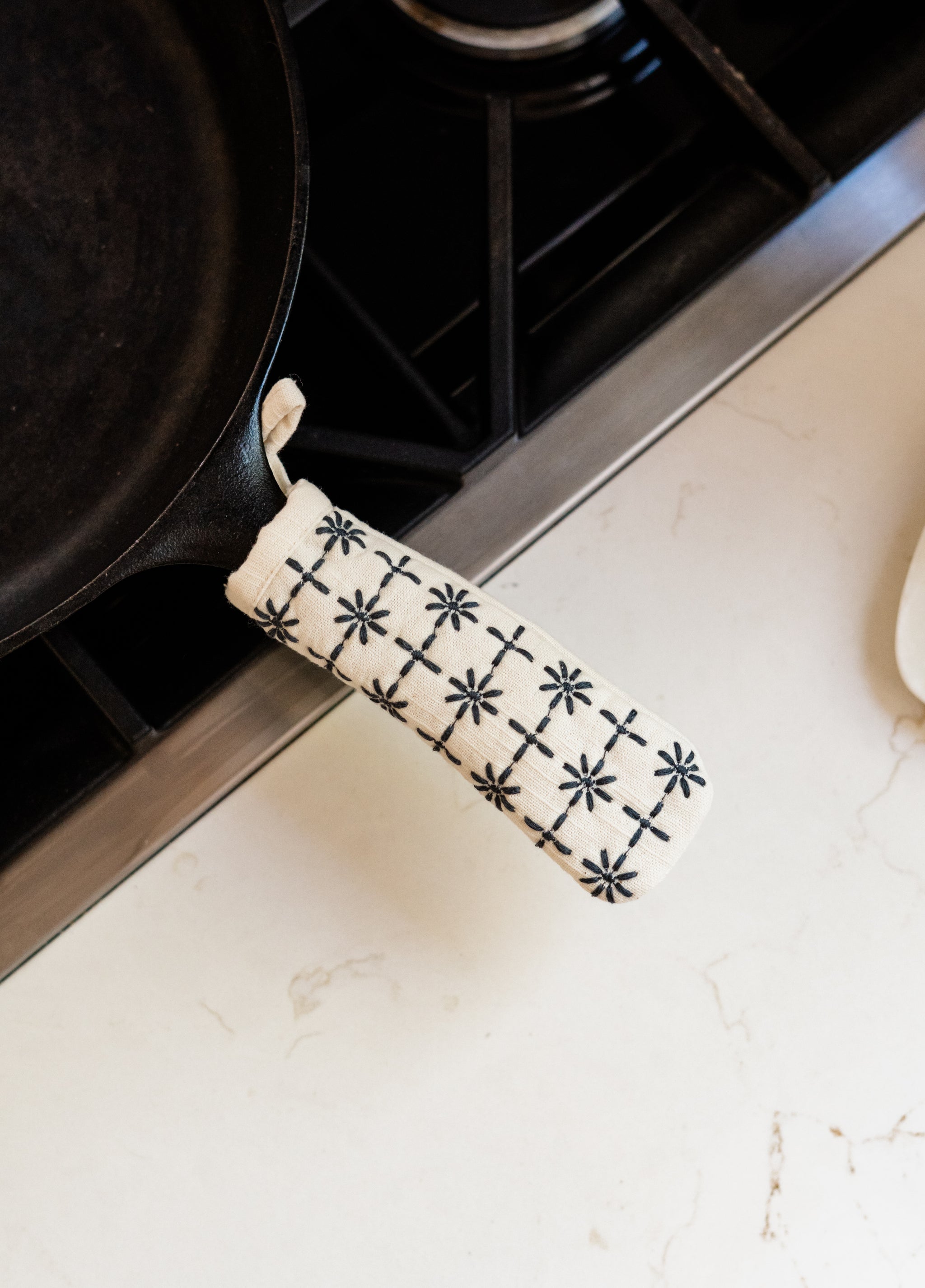Measuring 5"L x 1-3/4"W, these cute pot handle covers features an embroidered pattern and a convenient loop for easy hanging. Protect your hands from hot pots while adding a touch of style to your kitchen. Available in 4 trendy styles.