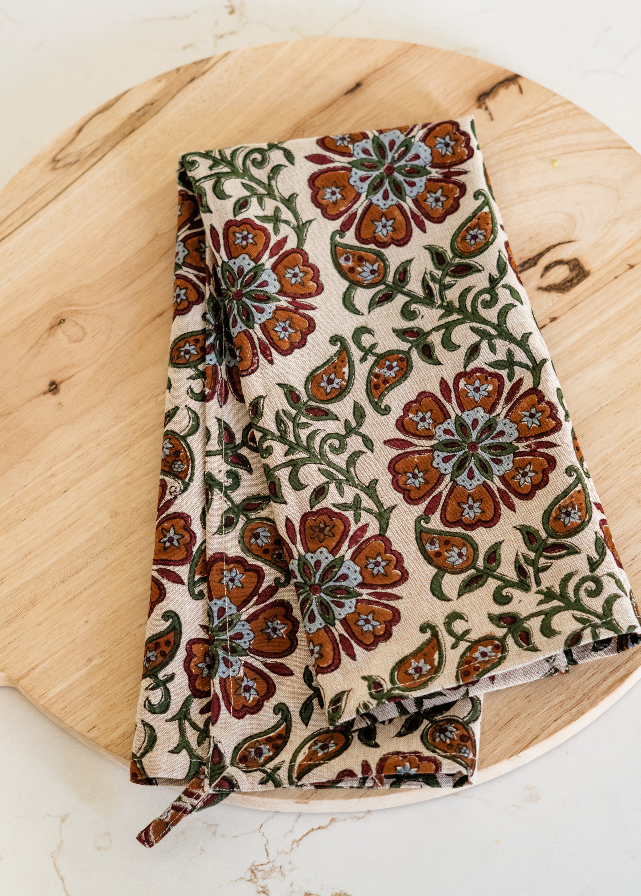 Our Elysian dishtowel is from the Chambray collection and it features a luxe heavier-weight cotton adorned by hand with beautiful block print designs. Combining this sturdy textile with the skilled craftsmanship of block printing creates a piece worthy of being passed down for generations.