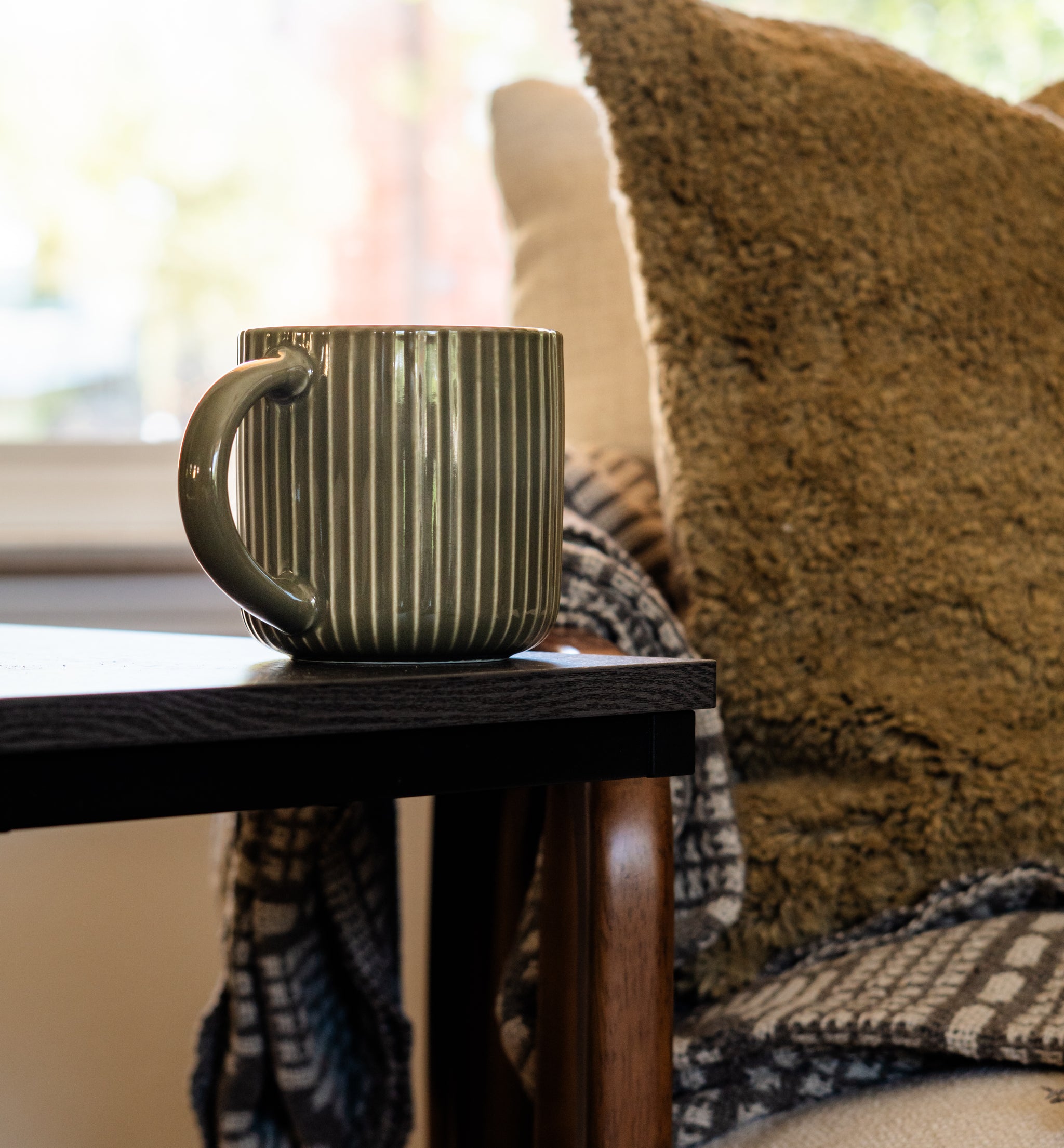 With modern fluted ridges and a generous capacity, this earth-toned Olive Branch fluted mug is made for savoring the moment.