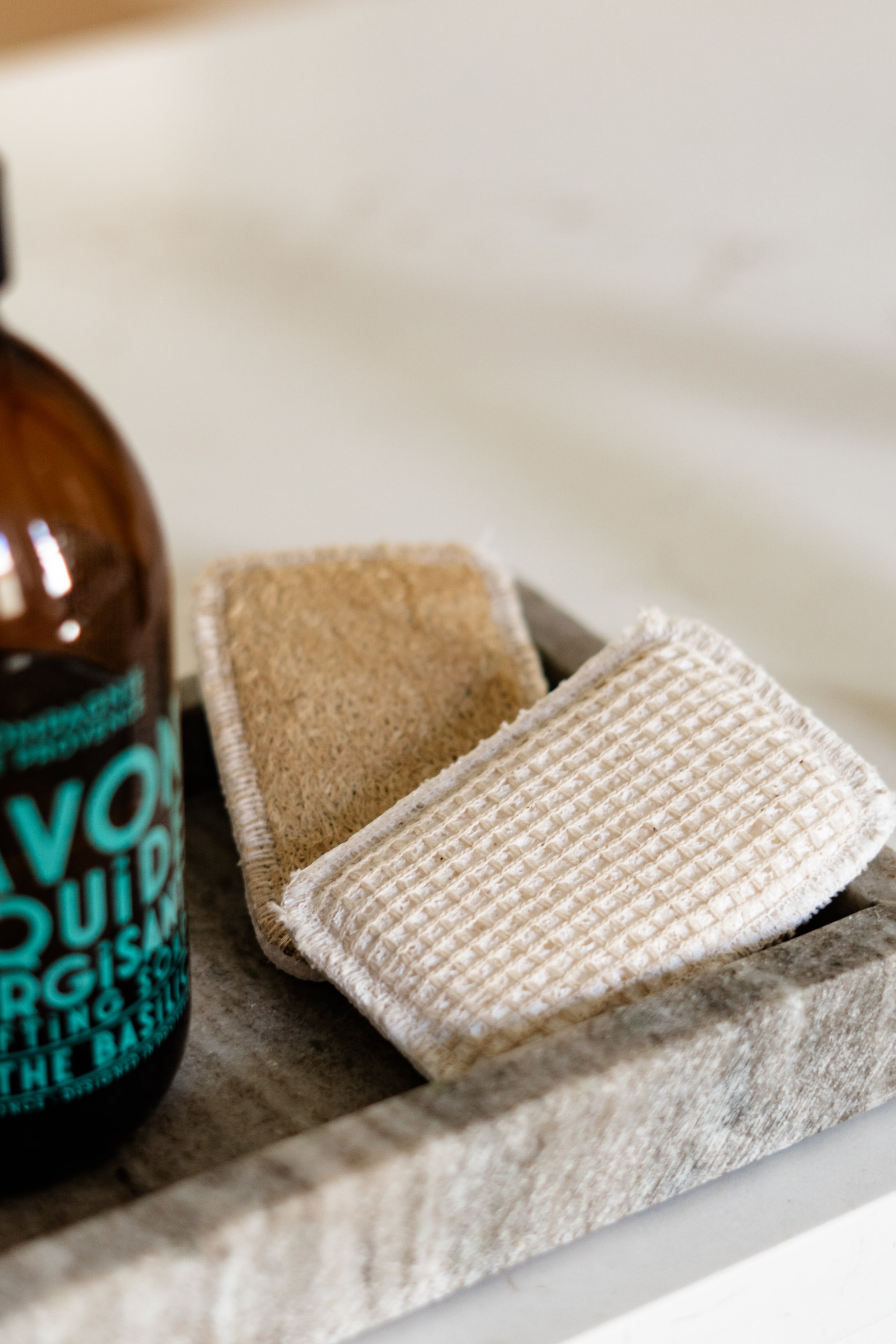 Set of 2 all-natural cellulose, loofah and cotton mesh sponges. They are compostable, biodegradeable, 100% Plastic free and can be cleaned in the dishwasher or washing machine.