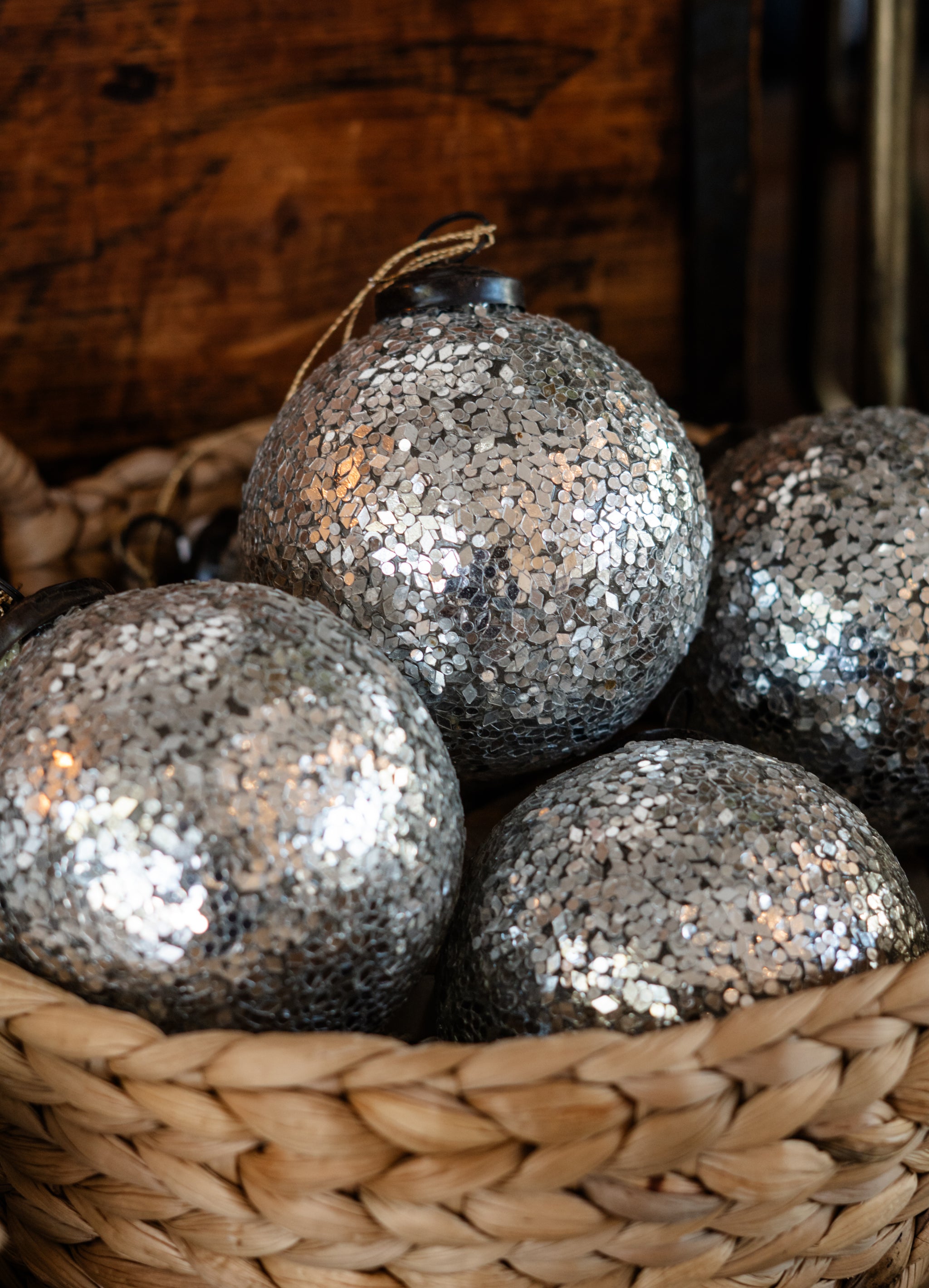 Elevate your holiday décor with this stunning 4" round ornament, where shimmering mica flakes catch the light and create a mesmerizing sparkle on your tree. Each delicate flake reflects festive brilliance, transforming ordinary branches into a winter wonderland of glittering fun.