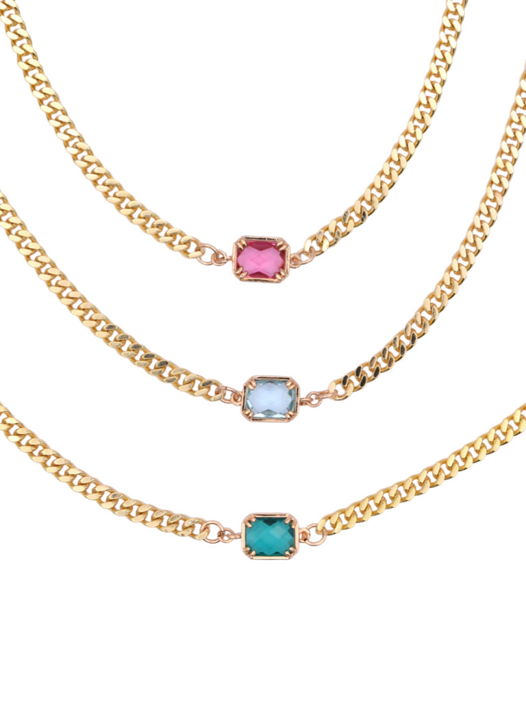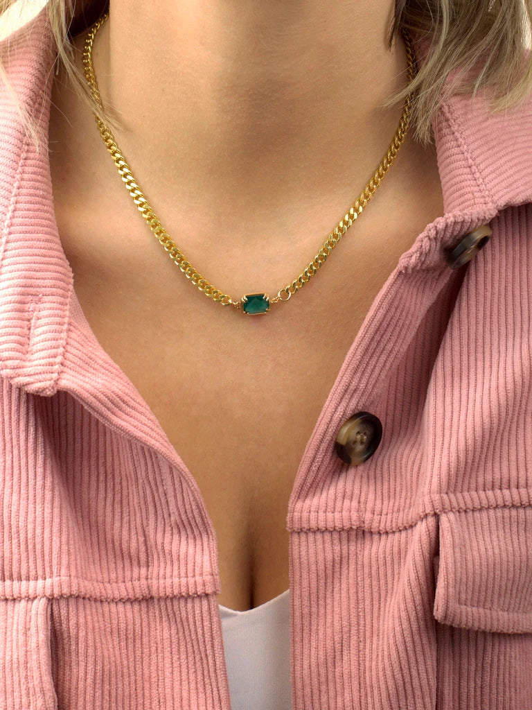 Rock your style with our On The Rocks Necklace! This gem necklace on a gold curb chain is not only adjustable from 14" to 18", but also makes for a great layering piece. Perfect for adding a touch of glam to any outfit. Made with love in Austin, TX by Farrah B.
