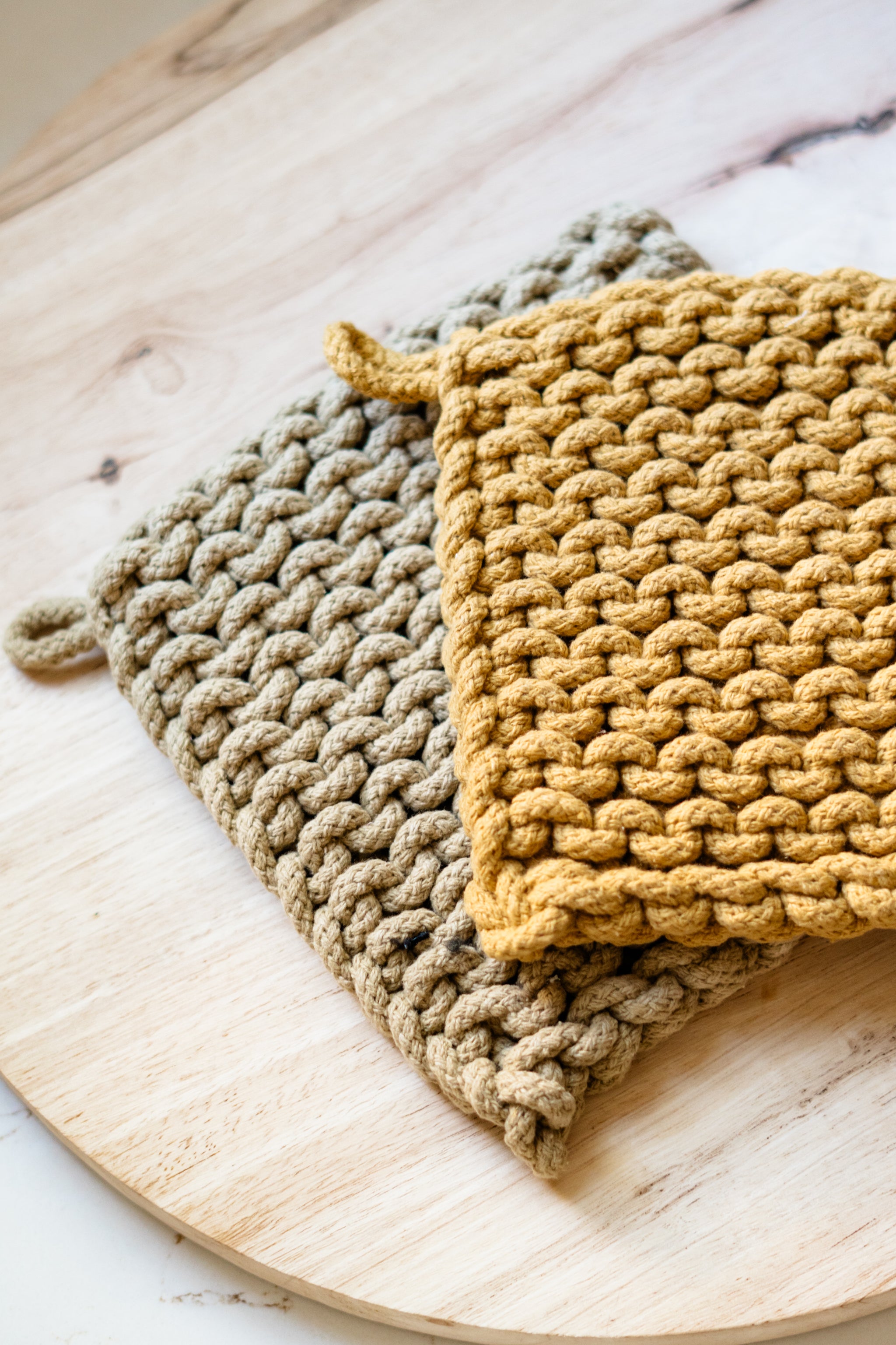 These delightful and pleasing cotton crocheted potholders will be the perfect addition to your kitchen essentials. They will be a charming accessory for any kitchen that will surely come in handy for all cooking and baking needs. Hang as a colorful wall decor or place stacked on cookbooks for everyday use and enjoyment. Comes in 4 colors.