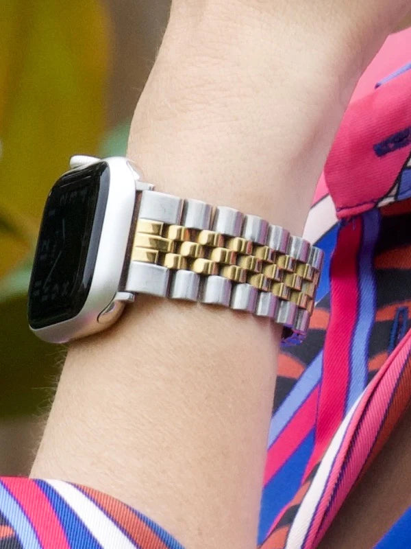 Our BIG SHOT Apple watch band is both stylish and professional. Perfect for day or night and comes in both a silver or gold option. This watch band can be adjusted to fit you perfectly. Made with love by Farrah B, from Austin, TX.