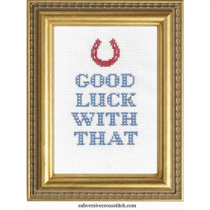 Hope that goes well for you! Deluxe kit includes material, thread, full color pattern, instructions, two needles and a hoop. Kit photos are an example of packaging and kit contents but will come with pattern in main photo. Gold frame not included!