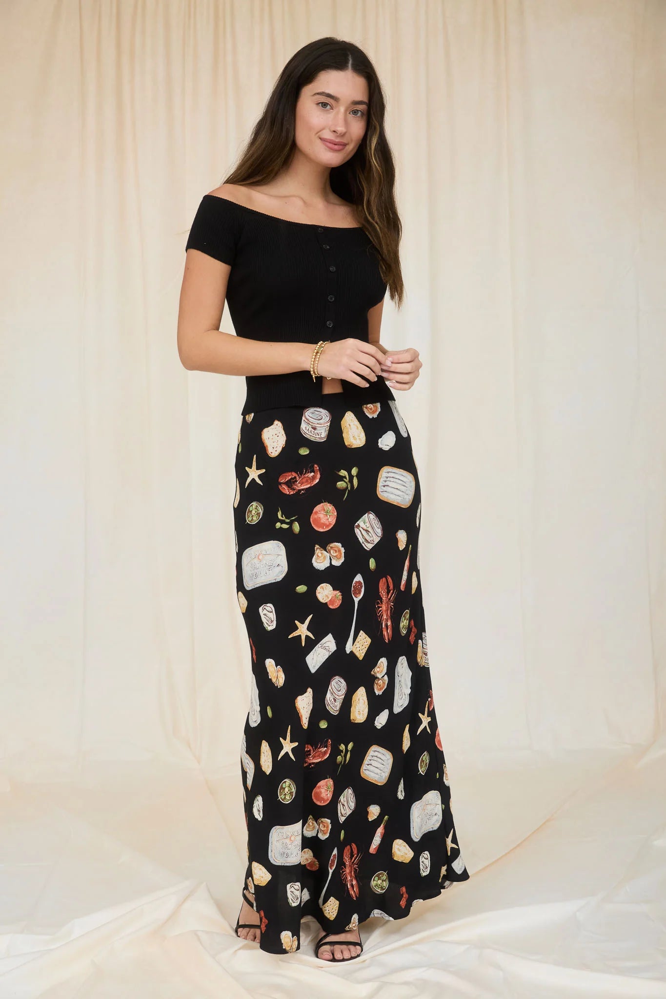 Effortlessly chic, this Portofino Maxi Skirt features a high-waisted elastic waistband for comfortable all-day wear. The slip-on design makes getting dressed simple, while the vibrant lunch motif in multi-color tones adds playful character. Crafted from breathable 100% rayon with a 100% polyester lining, it drapes beautifully and moves with you. Perfect for casual outings or relaxed weekend style.
