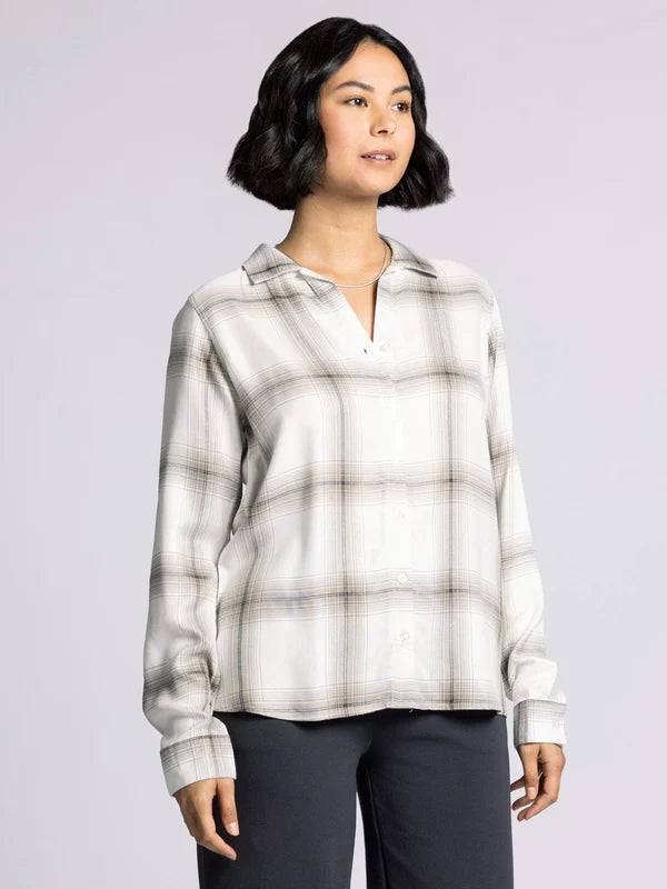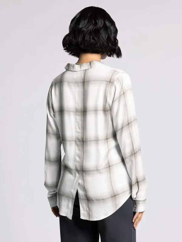 The Adeline Silver Plaid Top offers a collared V-neckline with a button front closure for easy wear. Its classic plaid pattern brings timeless style, while the lightweight fabric makes it perfect for the mild temperatures of Texas autumns. This top provides comfort and versatility for everyday layering.