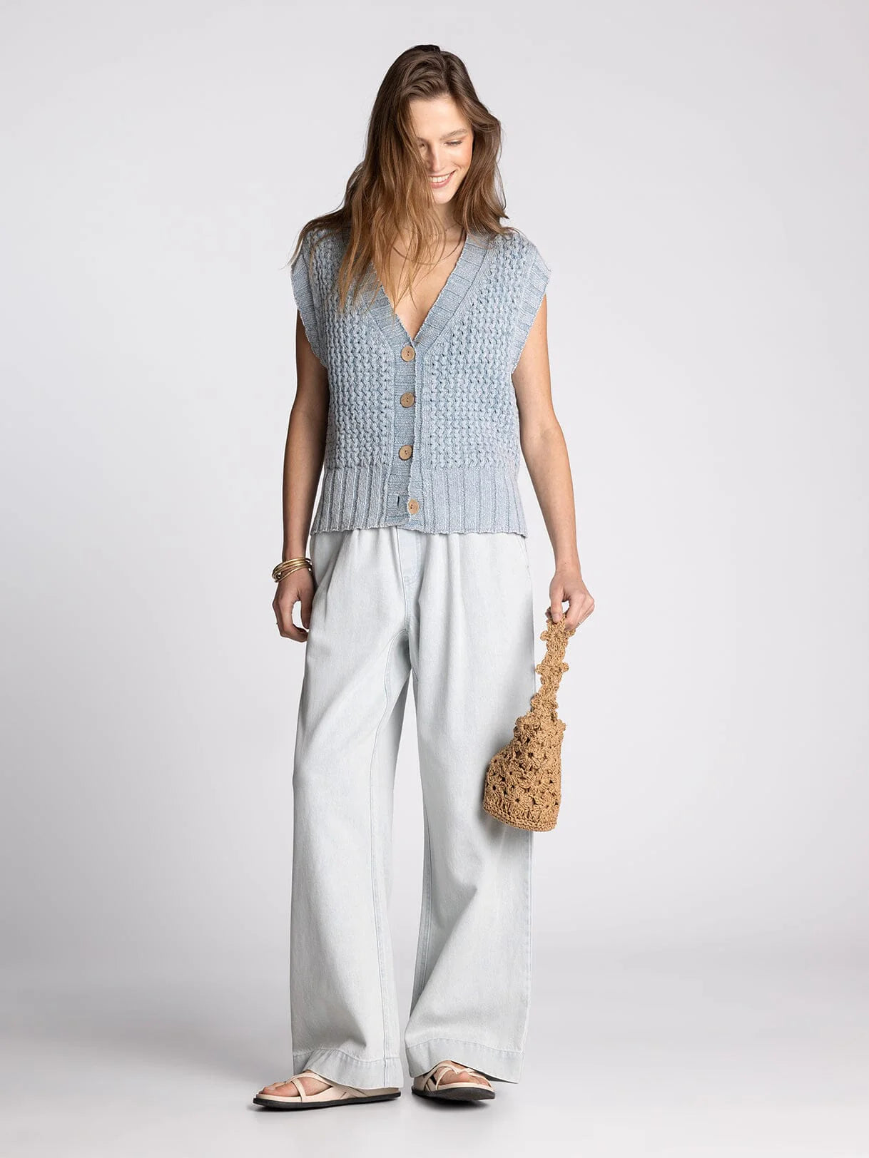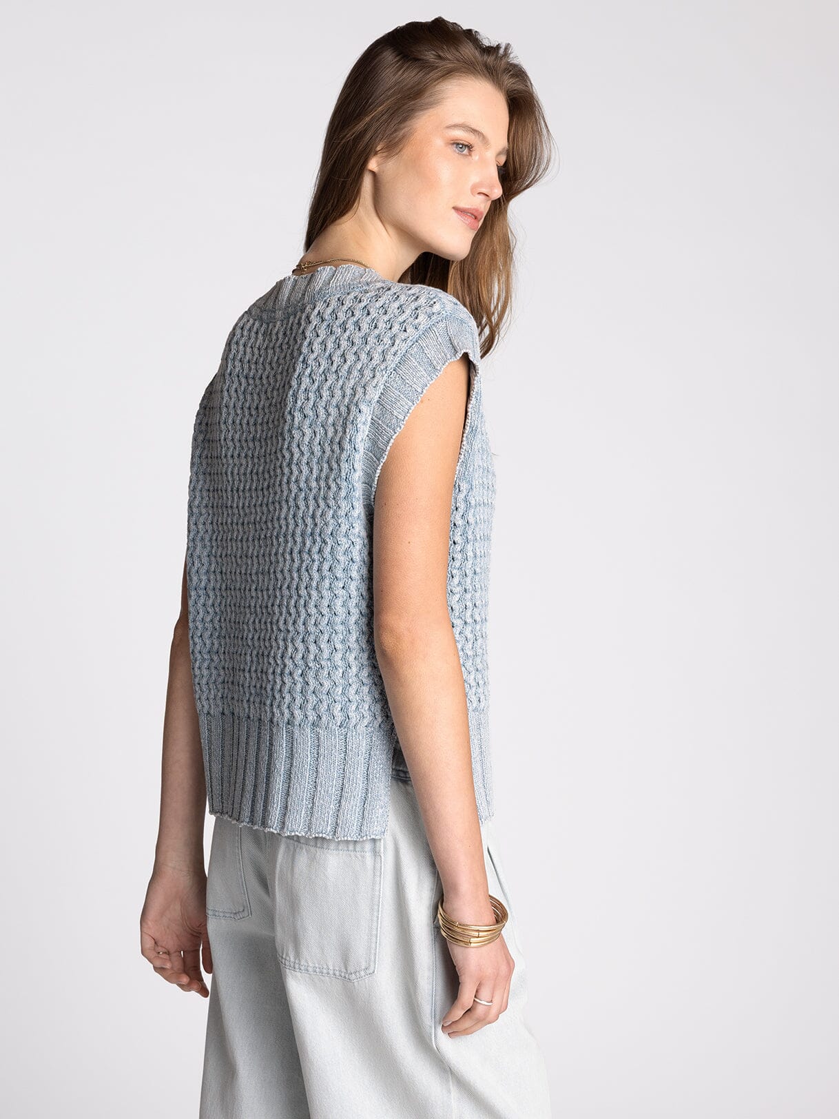 The Sherwood Sweater Vest in a classic denim blue wash is a reliable wardrobe staple. Featuring a flattering V neckline and functional button front closure, it works beautifully layered over tees or worn on its own. The soft, quality knit fabric delivers comfort and lasting durability, while the timeless design makes it a piece you'll reach for again and again throughout the year.